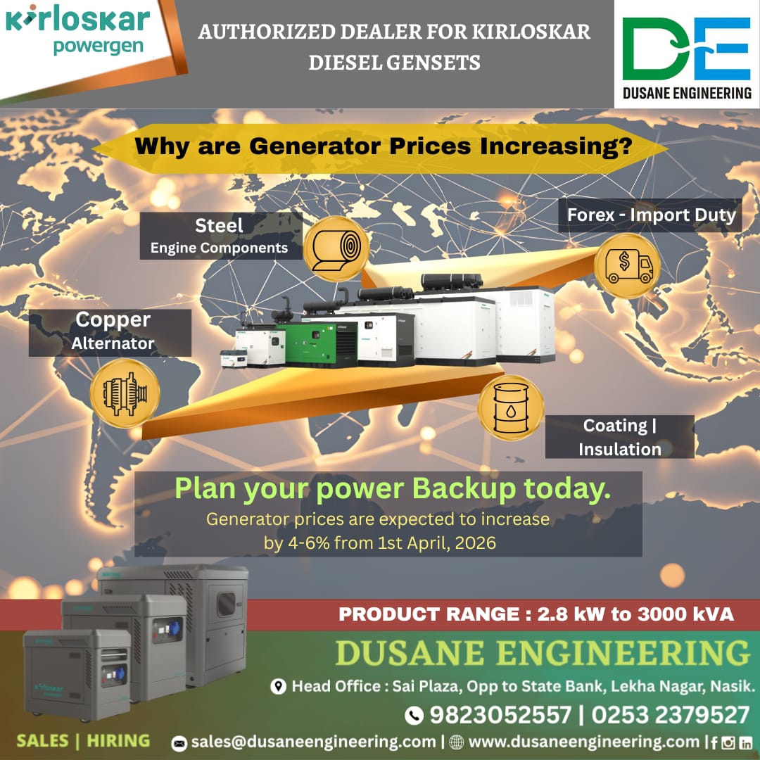 Why Are Generator Prices Increasing? ⚡📈 Generator prices are expected to rise by approximately 4–6% from April 2026. If you are planning to invest in a diesel generator (DG set), it is important to ........ View More